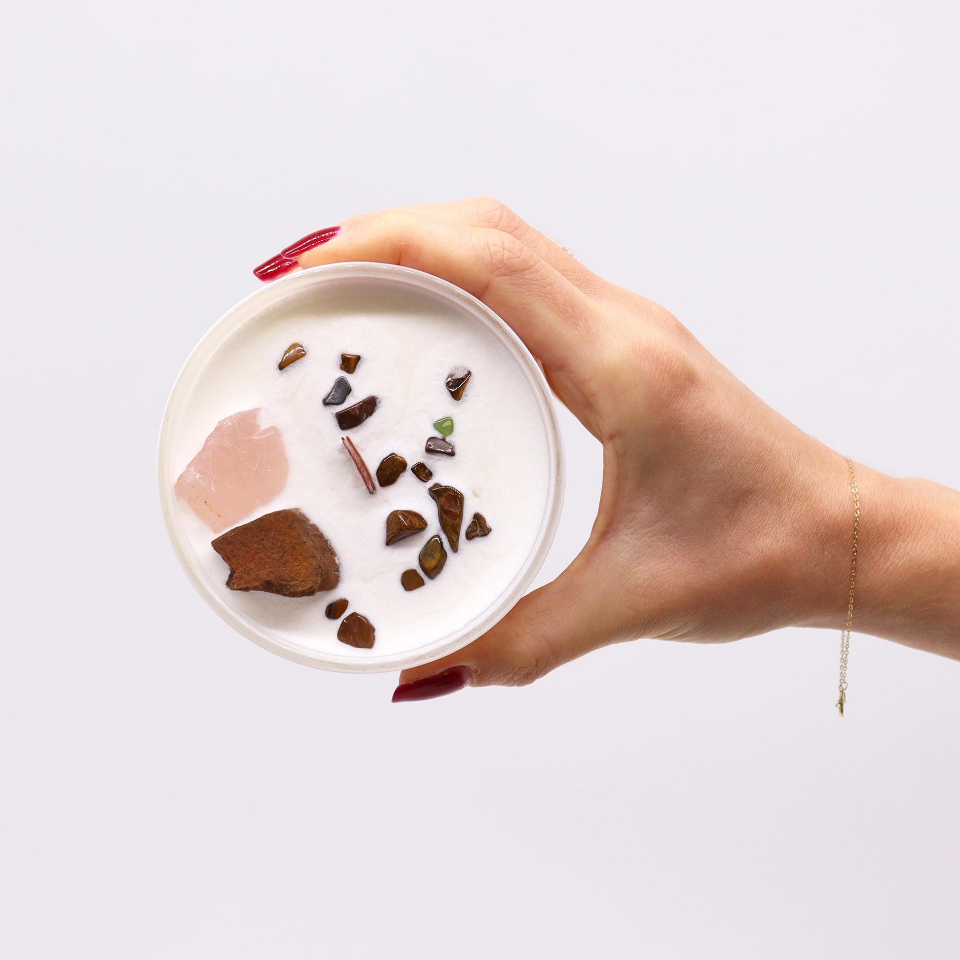 Light this candle to create a warm and inviting atmosphere that fuels your creative spark. Let the fragrance of "Invoking Dreams" inspire your imagination, while the energy of Tiger Eye and Rose Quartz crystals nurtures your emotional well-being.