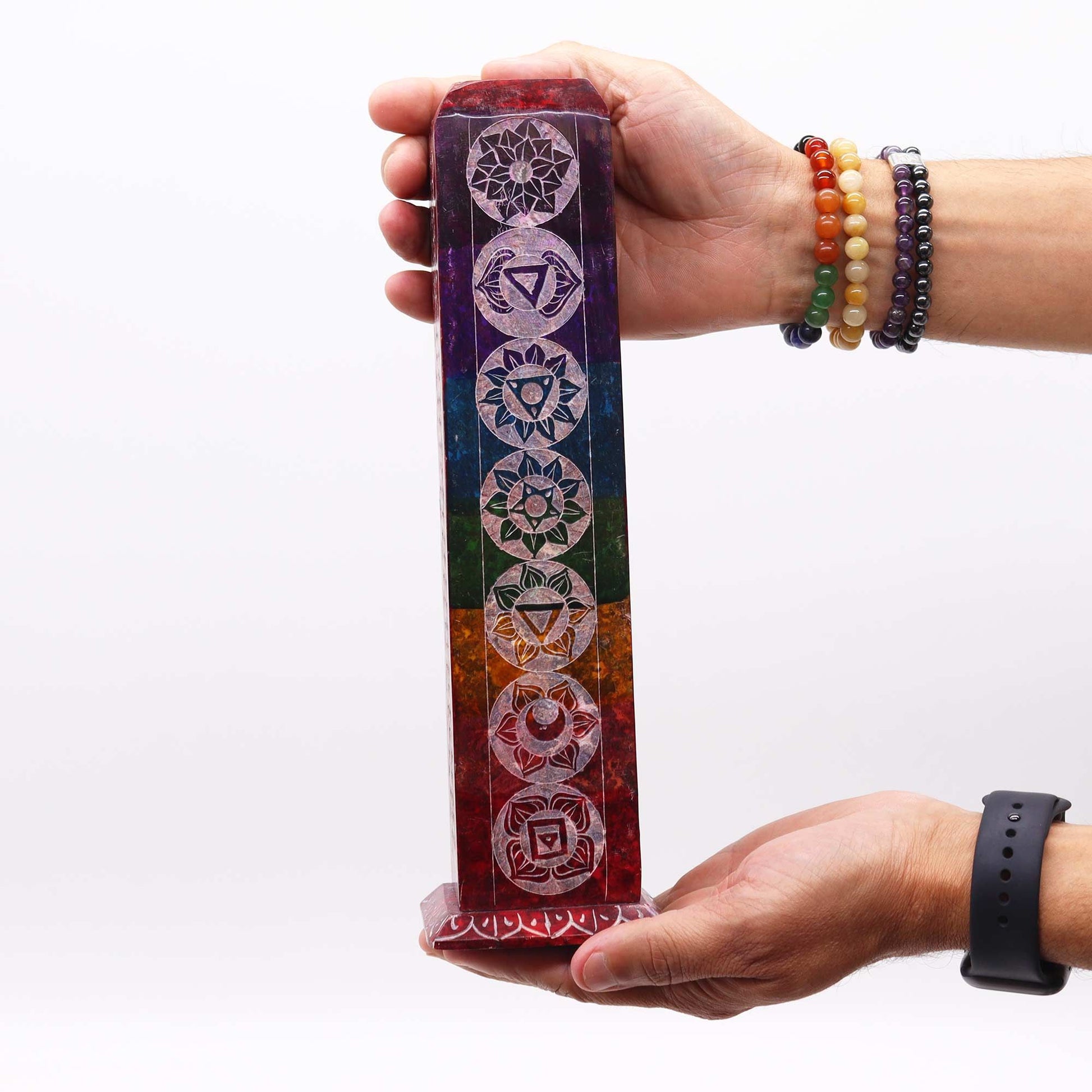 Soapstone Square Tower Incense Holder - 7 Charkras